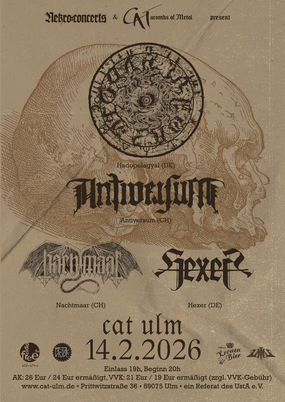 Die Ausgabe XXXVII des CATacombs Of Metal findet am 14.02.2026 im CAT in Ulm statt, in Kooperation mit Nekro:concerts:
