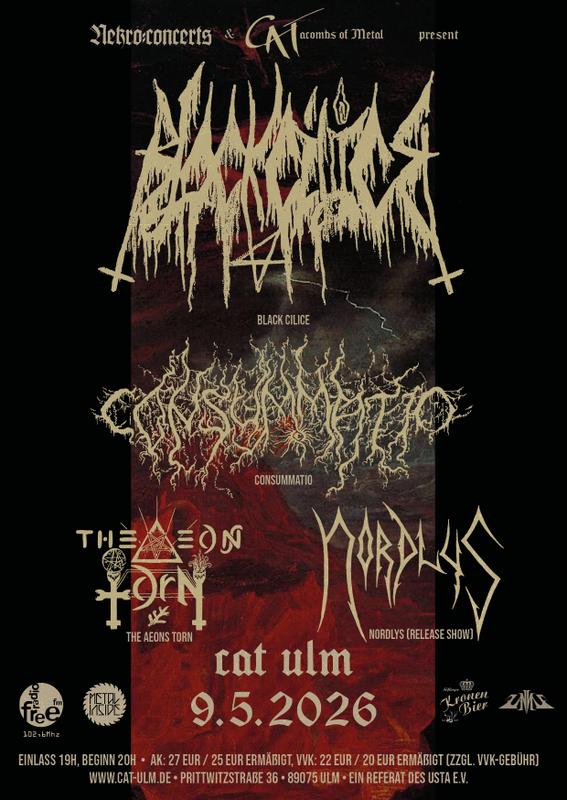 Die Ausgabe XXXVIII des CATacombs Of Metal findet am 09.05.2026 im CAT in Ulm statt, in Kooperation mit Nekro:concerts: